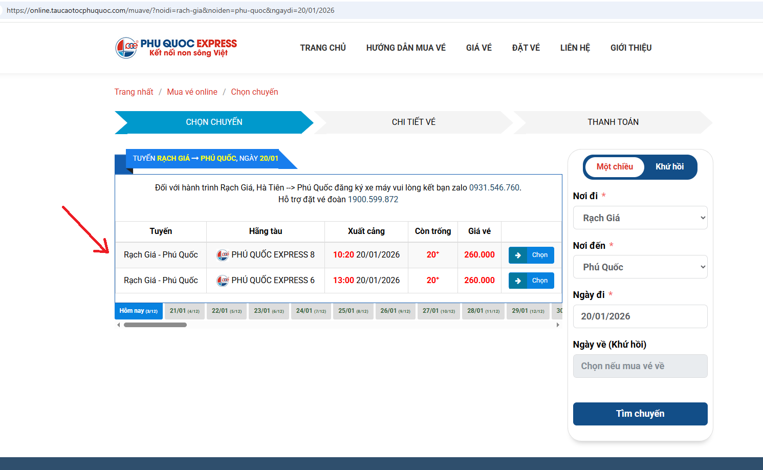 Dưới đây là các bước hướng dẫn tra vé và tìm kiếm vé tàu cao tốc đi Phú Quốc: