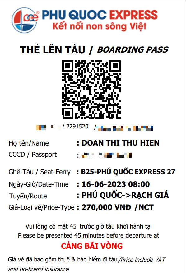 5. Thủ tục khi đi tàu Rạch Giá - Phú Quốc gồm những gì?
