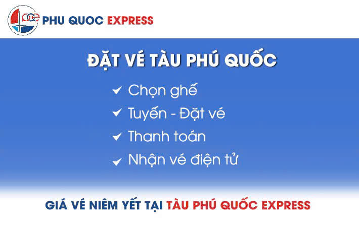 Đặt vé tàu Rạch Giá - Phú Quốc (Phú Quốc Express): Chọn hành trình - chọn vị trí ghế, điền thông tin hành khách - thanh toán và nhận vé điện tử qua email được giữ vé, không cần xếp hàng chờ đợi dịp cao điểm.
