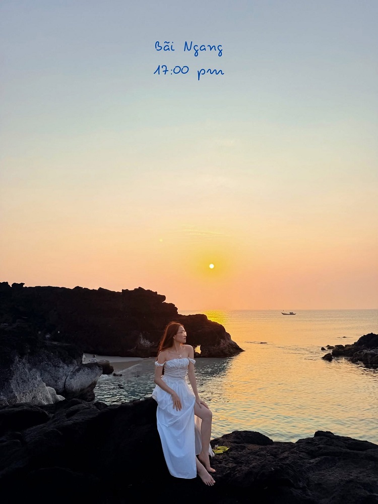 14:30 - 17:30: Ghé Ngộ Homestay uống nước, mượn xe đạp dạo chơi và kết thúc ngày tại Bãi Ngang. Tắm biển trong làn nước vắt và ngắm hoàng hôn buông xuống trên mặt biển là trải nghiệm tuyệt vời nhất tại đây.