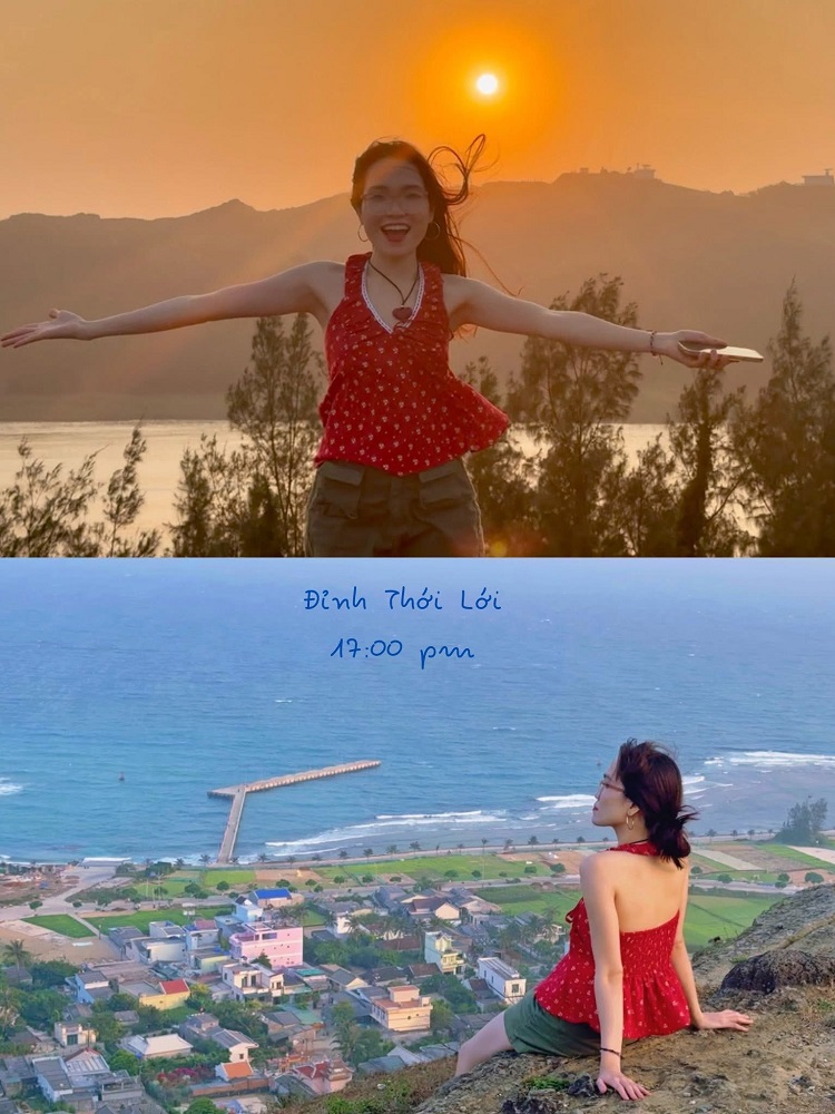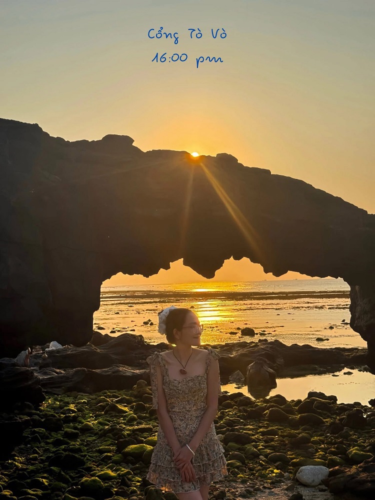 16:00 - 17:00: Đón hoàng hôn tại Cổng Tò Vò. Một trải nghiệm "siêu chill" là mượn một chiếc xe đạp nhỏ, thong dong trên con đường ven biển bích họa, để gió biển thổi bay mọi ưu phiền.