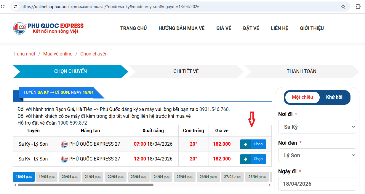 Lưu ý hành khách hiện tại vé tàu Phú Quốc Express (bao gồm cả tàu 27 và 05) không bán vé trực tiếp tại cảng. Vì vậy hành khách cần mua vé tàu Lý Sơn online được chọn ghế và nhận vé điện tử. Dưới đây là hướng dẫn chi tiết từng bước: