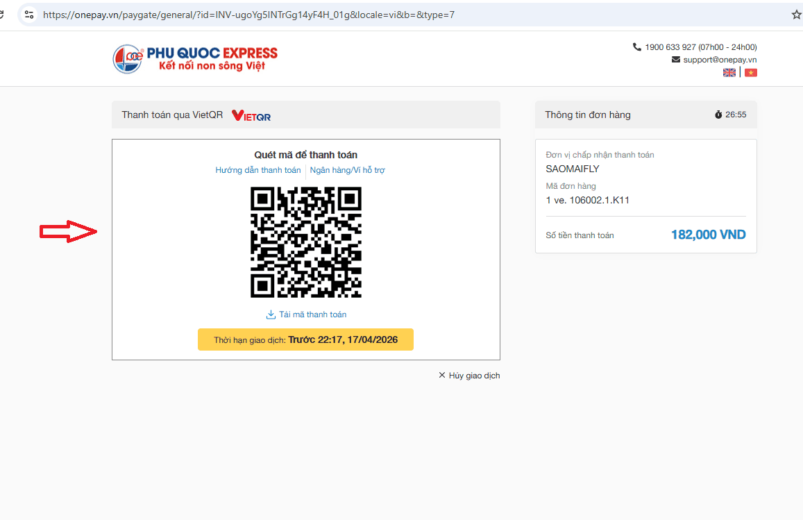 Chọn phương thức thanh toán: Quét QR chuyển khoản, ví điện tử, thẻ tín dụng… Thực hiện chuyển khoản theo đúng nội dung hướng dẫn trên màn hình để hệ thống tự động xác nhận.