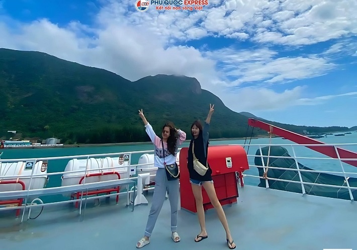 Vị trí đẹp: Mũi tàu, cạnh cửa sổ hoặc tầng trên boong tàu là những vị trí lý tưởng để sống ảo khi đi tàu Phú Quốc.
